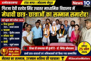 रिपोर्ट: News10plus Editor Mohd Rashid – Syed| अम्बेडकरनगर (टांडा): नगर के मोहल्ला नेपुरा में स्थित गिरजा देवी हरदेव सिंह उच्चतर माध्यमिक विद्यालय में आज शनिवार, 25 अप्रैल 2026 को हाई स्कूल बोर्ड परीक्षा 2026 में