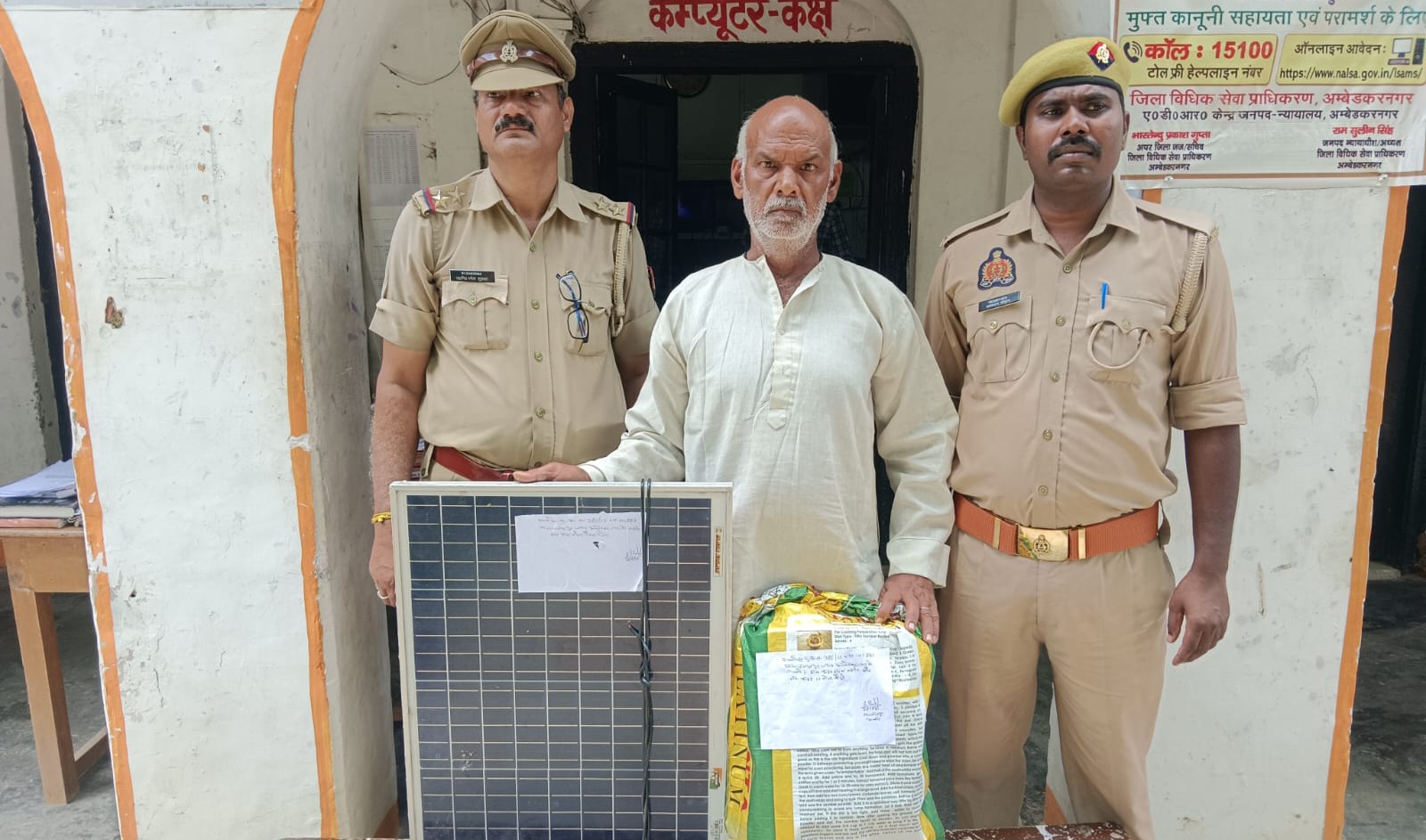 मशीन,एक बैटरी 12 वोल्ट, एक सोलर पैनल, आपराधिक इतिहास, मुकदमा अपराध संख्या 386/25 धारा 105 बीएनएस, थाना जलालपुर, जनपद अम्बेडकरनगर।