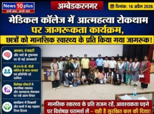 रिपोर्ट News10plus Editor Mohd Rashid – Syed| अम्बेडकरनगर |16 अप्रैल 2026 आत्महत्या की बढ़ती घटनाओं की रोकथाम तथा विद्यार्थियों के मानसिक स्वास्थ्य को बेहतर बनाने के उद्देश्य से
