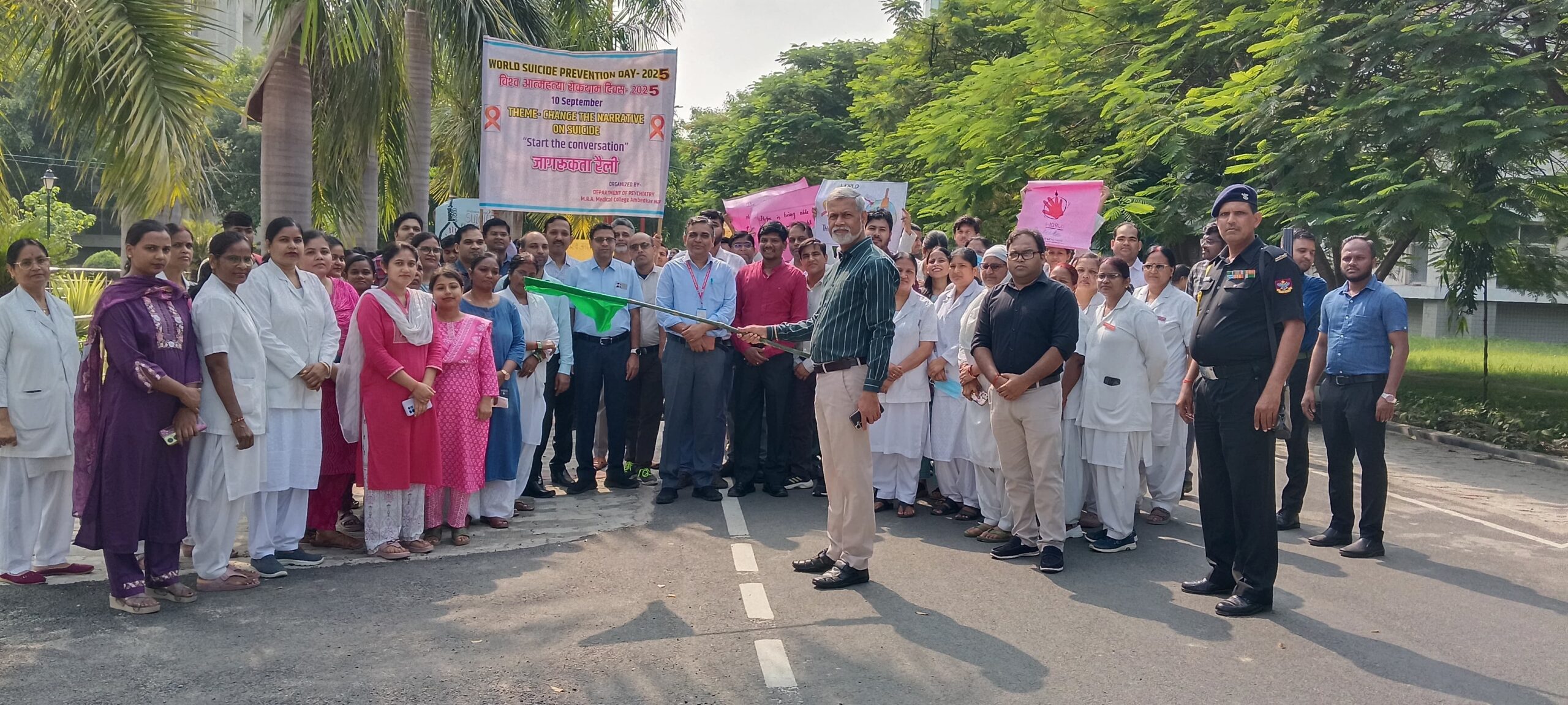 रैली का शुभारंभ कॉलेज के प्रधानाचार्य प्रो. (डॉ.) मुकेश यादवने हरी झंडी दिखाकर किया। इस अवसर पर उप-प्रधानाचार्य डॉ. उमेश वर्मा, मानसिक रोग विभागाध्यक्ष डॉ. अमित गुप्ता, डॉ. सुधांशु चंदे,डॉ. पारुल, मेडिसिन