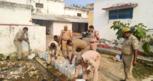 अवैध कच्ची शराब विनष्ट कराने वाली पुलिस टीम