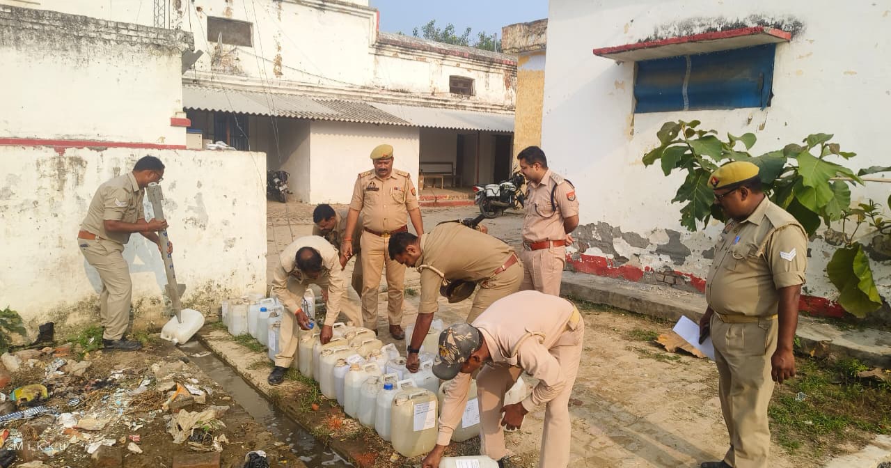 कुल नष्ट की गई अवैध कच्ची शराब: 385 लीटर नष्ट किए जाने की तिथि: 23.10.2025 अभियान: ऑपरेशन क्लीन स्थान: थाना कोतवाली टांडा, जनपद अम्बेडकरनगर
