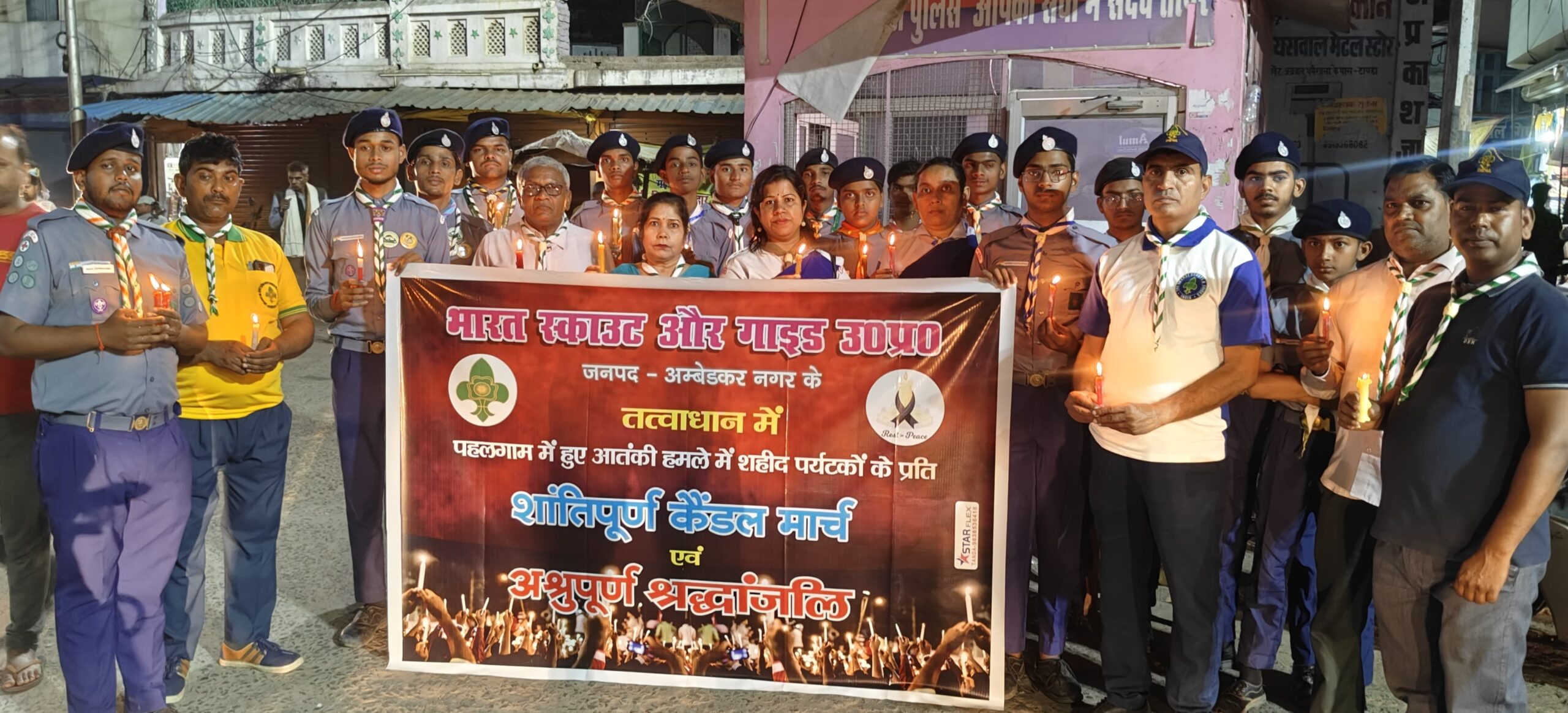 जिला संस्था के सदस्यों द्वारा पहलगाम जम्मू एवं कश्मीर में हुए आतंकी हमले के विरोध में एवं पीड़ित पर्यटकों के प्रति संवेदना व्यक्त करने हेतु निकट आर्य कन्या इंटर कॉलेज कस्बा से चौक घंटाघर टांडा तक कैंडल मार्च निकाल कर भावभीनी श्रद्धांजलि अर्पित की गई।