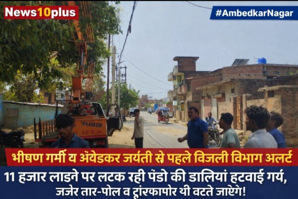 रिपोर्ट News10plus एडिटर मोहम्मद राशिद सैय्यद| अम्बेडकरनगर टांडा|12 अप्रैल 2026 (रविवार) आगामी 14 अप्रैल बाबा साहब डॉ. भीमराव अंबेडकर जयंती एवं जून माह में पड़ने वाली भीषण गर्मी को ध्यान में रखते हुए विद्युत विभाग ने बिजली व्यवस्था को सुचारू बनाए रखने के लिए विशेष अभियान शुरू कर दिया है। इसी अभियान के तहत…