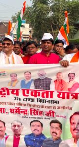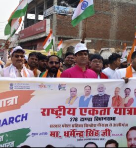 सभा को संबोधित करते हुए एमएलसी धर्मेंद्र सिंह ने कहा कि “तिरंगा हमारे सम्मान और गौरव का प्रतीक है।” उन्होंने बताया कि सरदार पटेल ने रियासतों का एकीकरण कर एक भारत–श्रेष्ठ भारत की नींव रखी और देश को टूटने से बचाया।