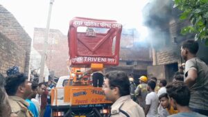 जहां आग पर काबू पाने की स्थानीय पुलिस प्रशासन ने तमाम हिकमत अमलीयों का इस्तेमाल किया जिसके कुछ घंटें बाद आग पर काबू पा लिया गया और आसपास के घरों में आग फैलने से बचा लिया गया है,
