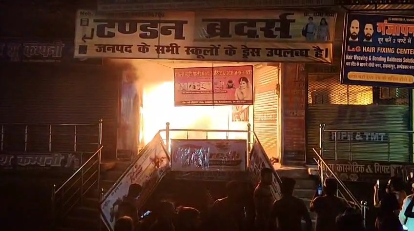 अकबरपुर रोडवेज पर पर स्थित टंडन ब्रदर्स की दुकान में लगी भीषण आग!