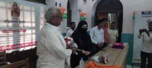 हरीशचंद्र तिवारी की 42 वर्ष की सेवा पूरी होने पर विदाई समारोह में नगर पालिका अध्यक्ष श्रीमती शबाना नाज़ द्वारा हुआ सम्मान