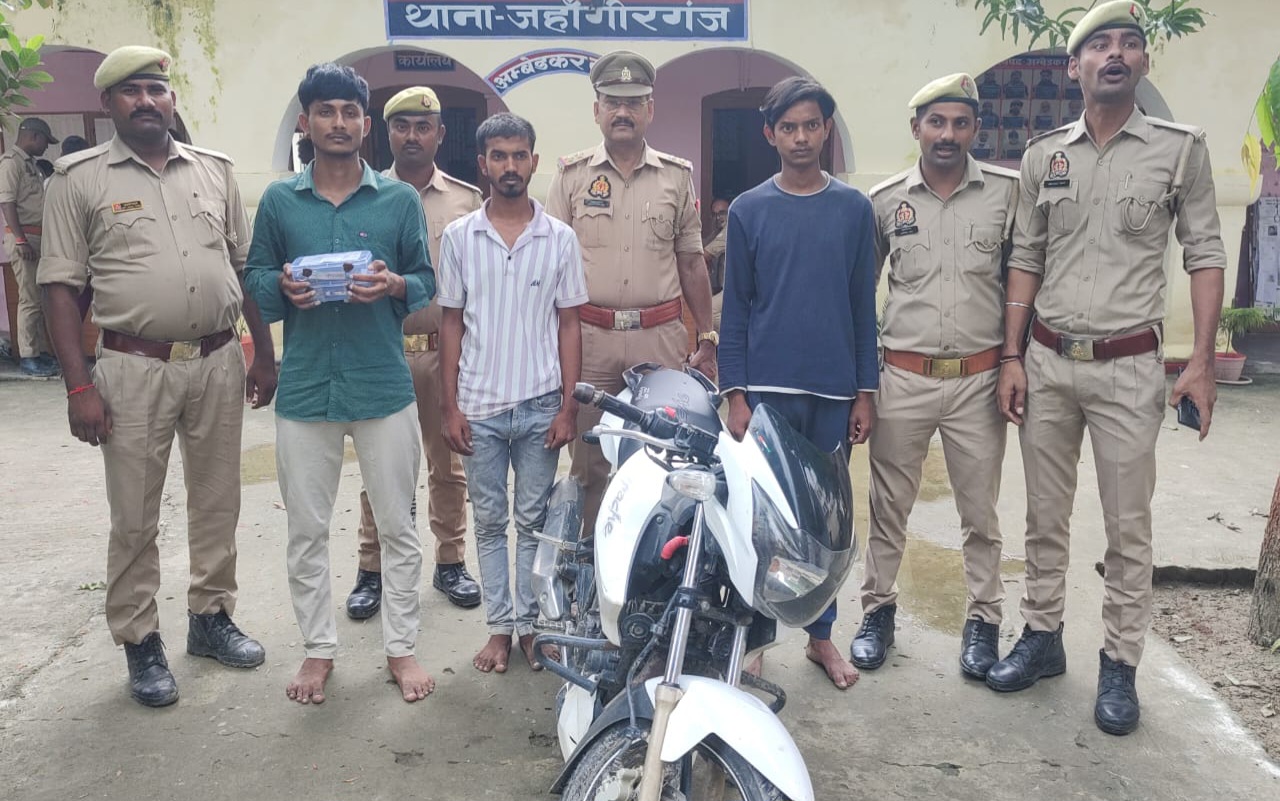 अम्बेडकरनगर ! 18 सितम्बर 2025। जनपद अम्बेडकरनगर में अपराध और अपराधियों पर नकेल कसने के लिए चलाए जा रहे विशेष अभियान के तहत थाना जहांगीरगंज पुलिस टीम को बड़ी सफलता मिली है। पुलिस ने तीन वांछित अभियुक्तों को चोरी की बाइक, मोबाइल और अवैध असलहा व कारतूस के साथ दबोच लिया।