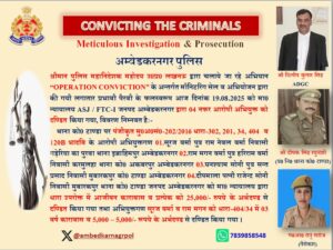के अन्तर्गत मॉनिटरिंग कॉल एवं प्रोसेसिंग देम की प्रभावी पैरवी के फलस्वरूप बड़ी सफलता मिली है। जिसमें दिनांक 19 अगस्त 2025 को माननीय न्यायालय ASJ/FTC-अम्बेडकरनगर द्वारा दोषी करार देते हुए सभी अभियुक्तों को