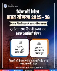 भुगतान कर कर्ज से मुक्ति पाएं और भविष्य की किसी भी कार्रवाई से बचें। यह योजना विशेष रूप से टांडा, अम्बेडकर नगर क्षेत्र के उपभोक्ताओं के लिए एक बड़ा अवसर है।