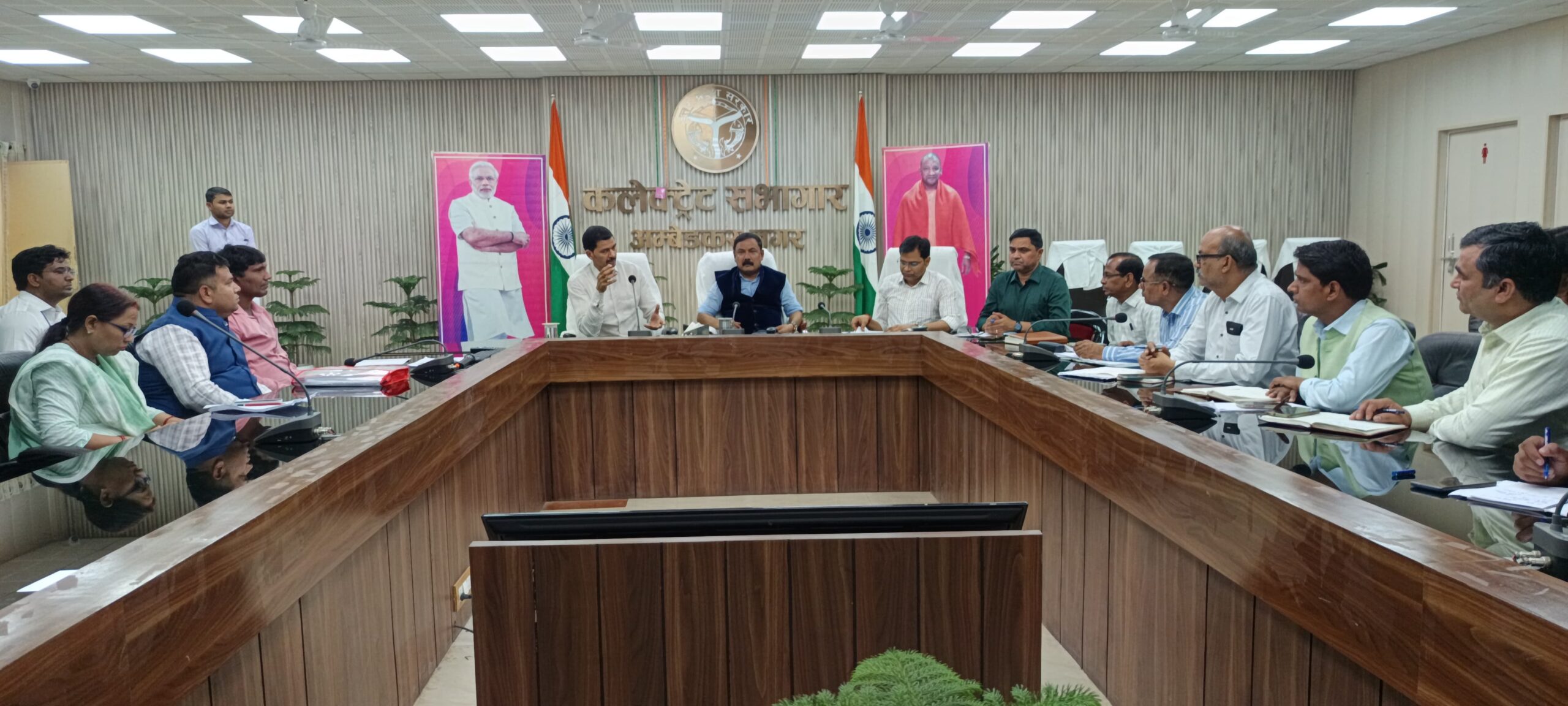 अम्बेडकरनगर में जिलाधिकारी अविनाश सिंह ने कलेक्ट्रेट सभागार में मुख्य विकास अधिकारी आनंद कुमार शुक्ला और अपर जिलाधिकारी सदानंद गुप्ता की उपस्थिति में