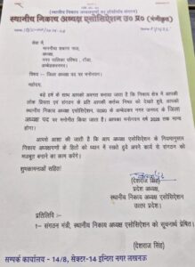 स्थानीय निकाय अध्यक्ष एसोसिऐशन उत्तर प्रदेश के प्रदेश अध्यक्ष देशराज सिंह द्वारा जारी मनोनयन पत्र में कहा गया है कि शबाना नाज को अम्बेडकरनगर जिला अध्यक्ष पद पर मनोनित किया जाता है।