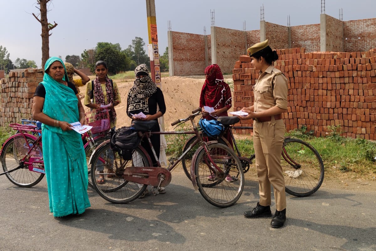 द्वारा ग्राम/कस्बा/मौहल्ला/शिक्षण संस्थानों इत्यादि पर भ्रमण/चौपाल लगाकर छात्राओं/बालिकाओं एवं महिलाओं को उनके अधिकारों, वूमेन पावर लाइन-1090, यूपी-112, विभिन्न हेल्पलाइन नंबरों की जानकारी देकर किया गया जागरूक।