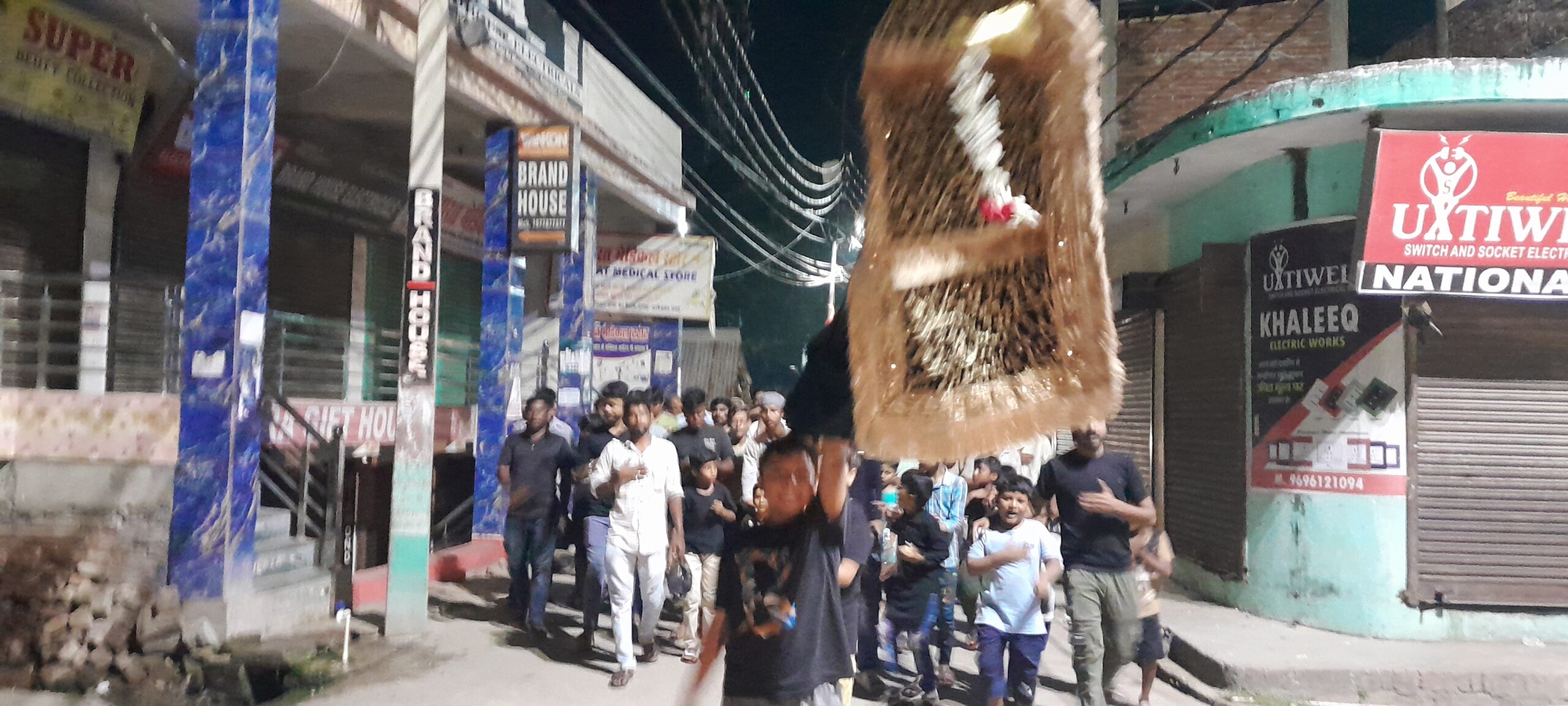 जहां मिम्बर-ए-रसूल से मौलाना ने मजलिस को सम्बोधित किया और संयुक्त अंजुमनों ने नौहा मातम किया और जुलूस आगे बढ़ते हुए राजा के मैदान स्थित स्व. डॉ. सैय्यद कौसर हुसैन के निवास स्थान पर पहुंचकर