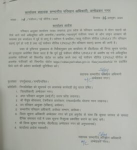 अम्बेडकर नगर ! 24 अक्टूबर 2025। सहायक सम्भागीय परिवहन अधिकारी, अम्बेडकर नगर कार्यालय द्वारा एक महत्वपूर्ण आदेश जारी किया गया है।