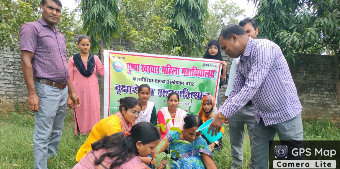 टांडा अम्बेडकरनगर ! उत्तर प्रदेश शासन के निर्देशानुसार जुलाई 2025 को एक पेड़ मां के नाम अभियान के तहत पुष्पा खरवार महिला पी.जी. कॉलेज