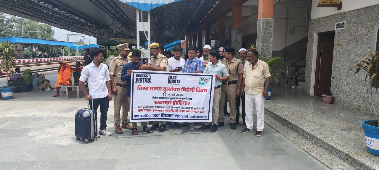 30 जुलाई 2025 को विश्व मानव दुर्व्यापार विरोधी दिवस के दृष्टिगत रेलवे स्टेशन अकबरपुर में जागरूकता अभियान