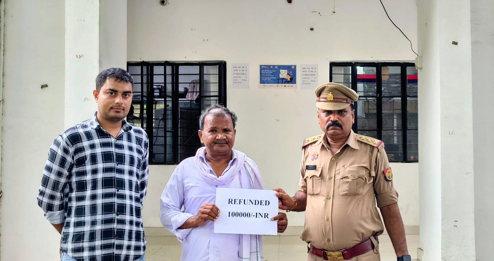और शिकायतकर्ता को उनकी ₹1,00,000/ एक लाख रुपये की राशि सुरक्षित रूप से वापस दिलाई। इस सफलता पर शिकायतकर्ता व उनके परिजनों ने साइबर क्राइम थाना अम्बेडकरनगर पुलिस टीम के प्रति आभार व्यक्त किया और खुशी जाहिर की।