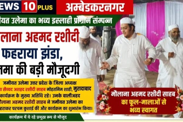 रिपोर्ट: News10plus एडिटर|               अम्बेडकरनगर। जमीयत उलेमा जिला अम्बेडकरनगर की ओर से एक भव्य इस्लाही प्रोग्राम का आयोजन किया गया, जिसमें बड़ी संख्या में उलमा-ए-किराम और सामाजिक गणमान्य लोग मौजूद रहे। उनके वालीअहद मौलाना अहमद रशीदी ने जमीयत उलेमा का झंडा फहराकर परचम कुशाई की और कार्यक्रम का विधिवत शुभारंभ…