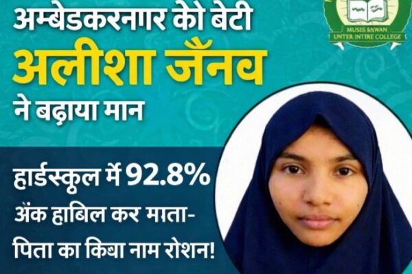 अम्बेडकरनगर टांडा काजीपुरा की होनहार छात्रा अलीशा ज़ैनब ने हाईस्कूल में 92.8% अंक हासिल कर माता पिता का नाम रोशन किया!