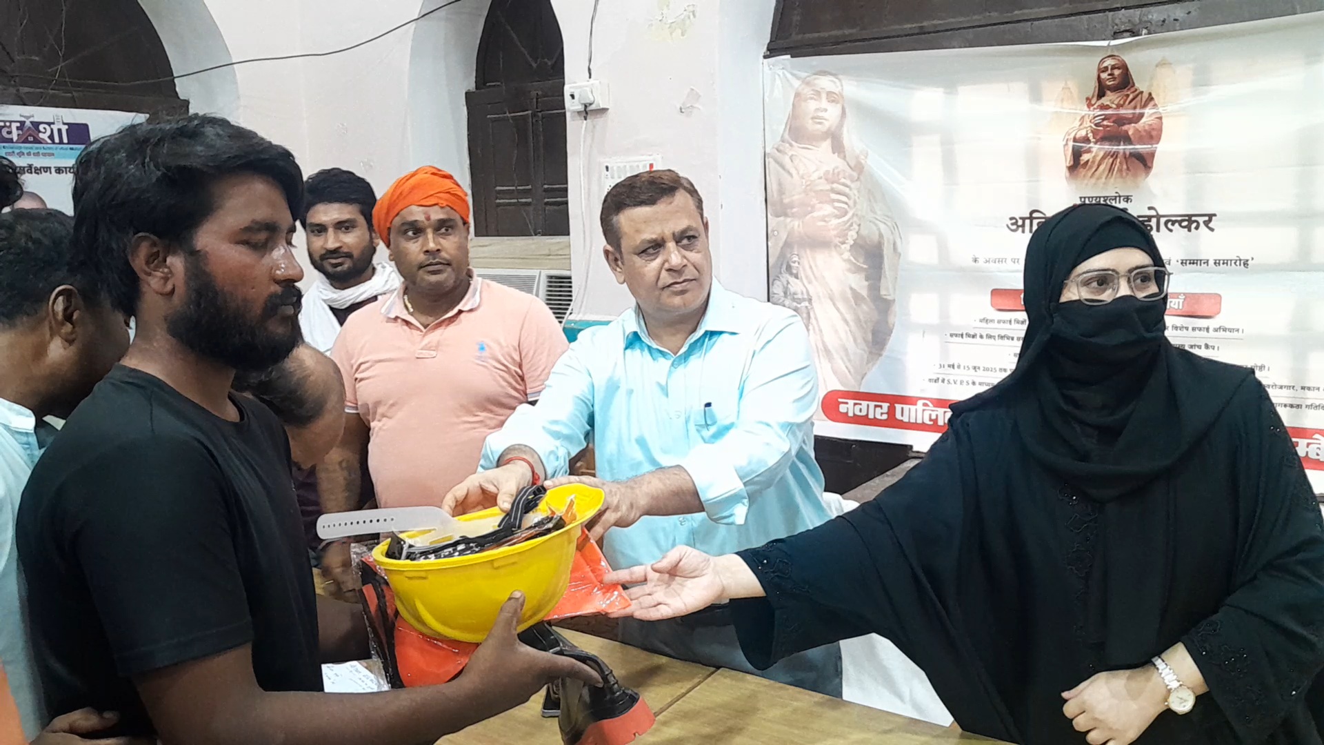 शुक्रवार को 320 से अधिक सफाई कर्मियों को सुरक्षा किट वितरित की गई। इस आयोजन में किटों का वितरण उपजिलाधिकारी व प्रभारी अधिशासी अधिकारी अरविंद त्रिपाठी एवं नगर पालिका परिषद की अध्यक्ष श्रीमती शबाना नाज़ के कर-कमलों से किया गया।