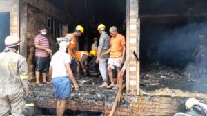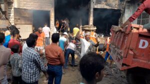 नगर पालिका की सफाई टीम” अग्निशमन टीम का बिल्डिंग से निकल रहे धुएं को खत्म करने का प्रयास जारी, करोड़ों रुपये का नुकसान”अग्निशमन कर्मियों की मेहनत, पुलिस प्रशासन की भी अहम भूमिका”