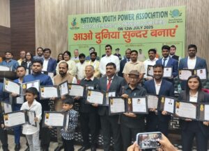 युवाओं को सम्मानित किया गया। सम्मान समारोह में विभिन्न राज्यों के युवा प्रतिनिधियों, सामाजिक कार्यकर्ताओं और विशिष्टजनों ने सहभागिता की।